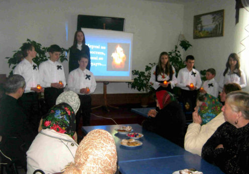27.11.2013р. о.Степан Галай та усі присутні в залі помолитися за душі померлих «Отче наш» та «Богородице Діво», та пом’янули заморених голодом хвилиною мовчання. Перед одинокими